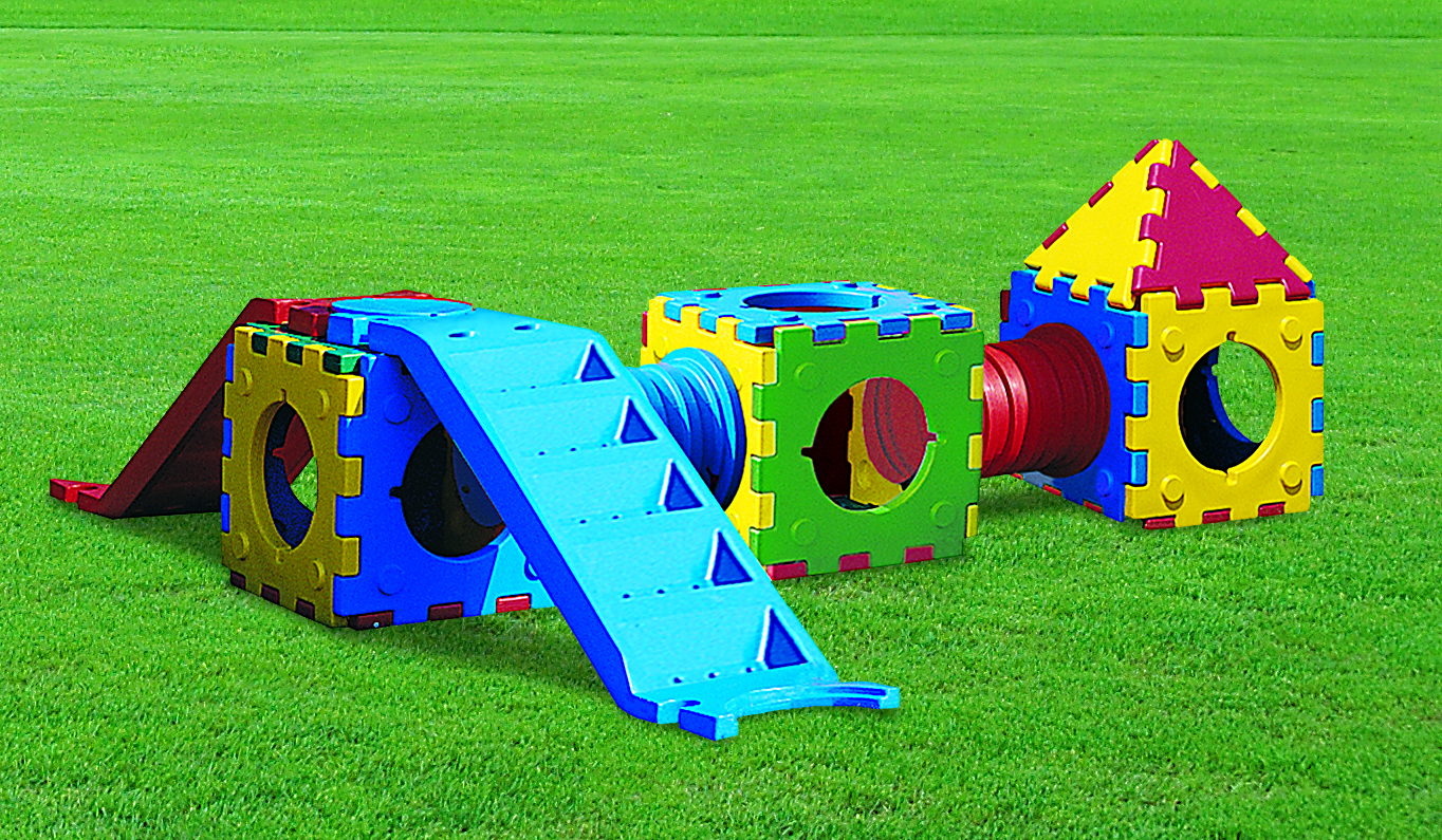 Sigurna, čvrsta i lagana konstrukcija s kockastim oblicima koja sadrži dva stepeništa, tunele za provlačenje i skrivanje, četiri trokuta i jedan vrh. Potiče aktivno kretanje djece uz dugotrajnu zabavu.